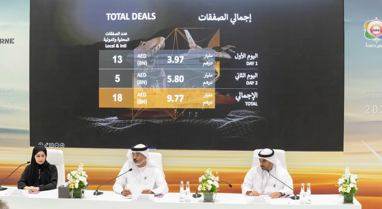 With these agreements, the total value of contracts signed during the first two days of the exhibitions has reached AED 9.77 billion across 18 deals. The announcement was made during a press conference attended by Majed Ahmed Al Jaberi, Mohammed Saif Al Zaabi, and Mahra Bilal Al Dhaheri, the official spokespersons for Tawazun Council.