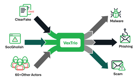 - VexTrio attack chains can include multiple actors. Four actors have been observed in an attack sequence.