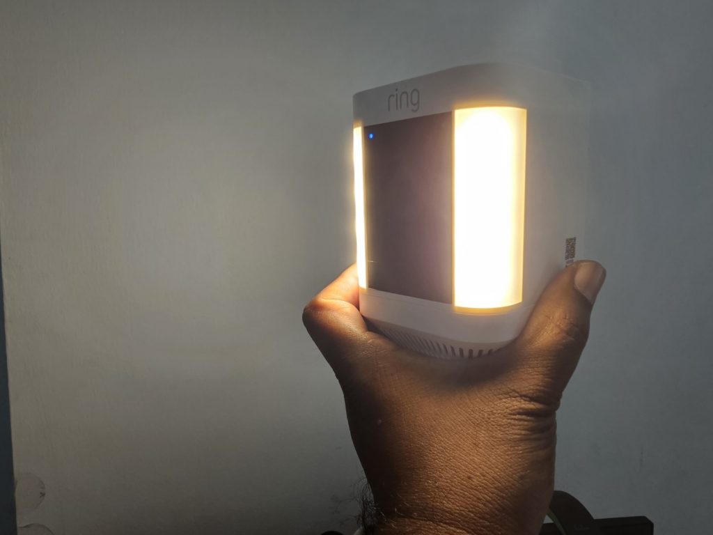 The Ring Spotlight Cam Plus features a sturdy and intelligent design available in black or white. The company has positioned LED lights on either side of the camera and the sensors to give it a robust appearance. While the overall build may feel somewhat plasticky, the quality of the construction is pretty good.