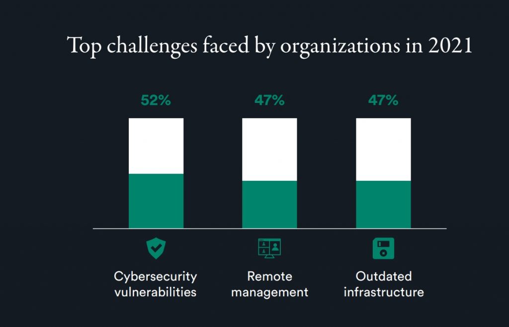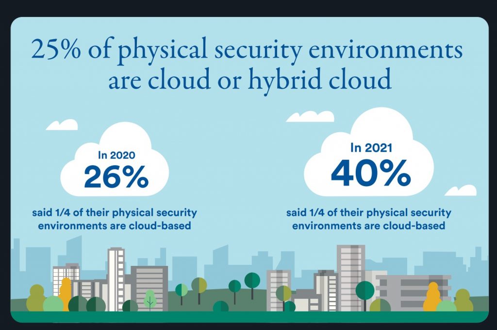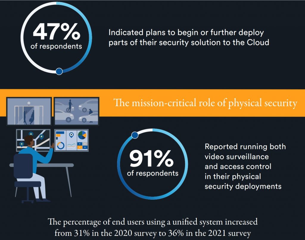 With the pandemic forcing restricted access to physical sites, cloud-based solutions that enable organizations to remotely monitor video, control cameras, assess system health, perform maintenance, and update firmware/software have become invaluable. The survey showed that 45% of larger organizations (with over 1,000 employees) have already adopted cloud solutions which is a significant increase compared to 2020 when only 26% of respondents said they had begun their cloud journey.