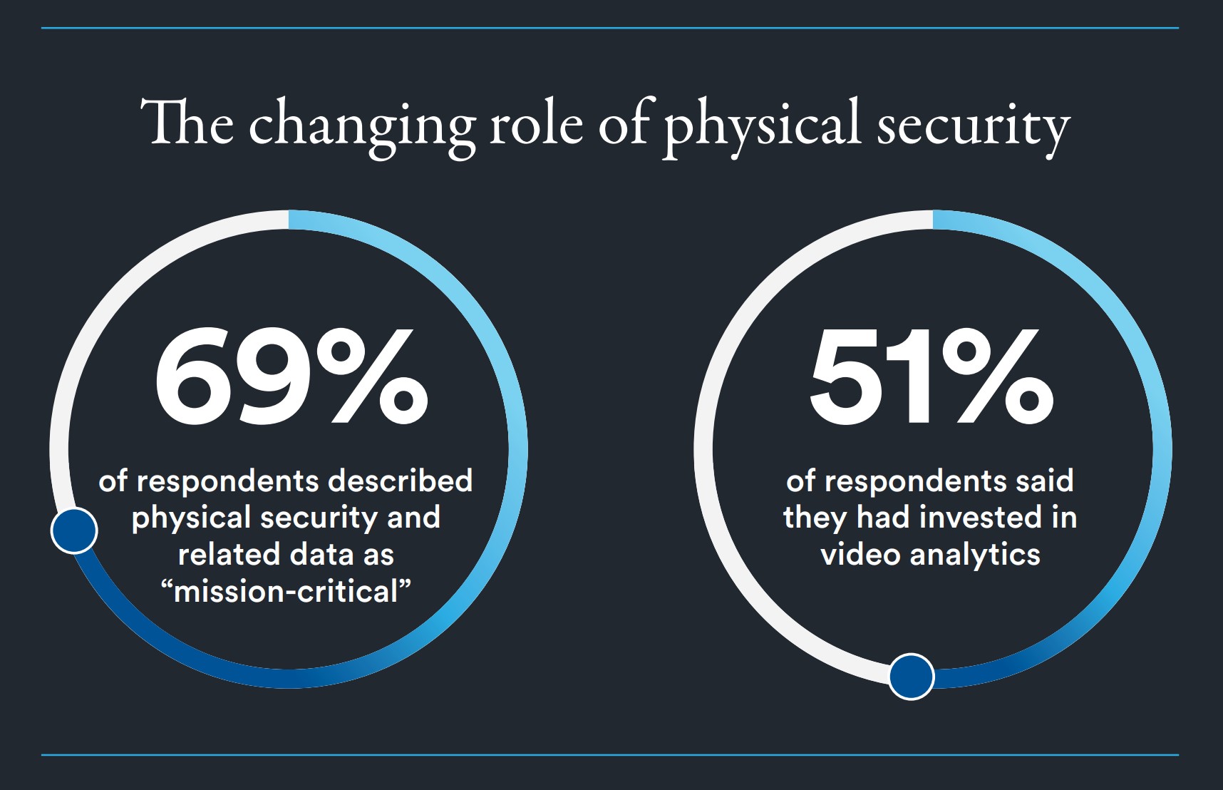 Physical security continues to evolve from being seen as a tool for mitigating risk, to playing a much more significant role in organizations’ digital transformation. The survey showed that more than two-thirds (69%) of respondents described physical security and related data as “mission-critical”. Larger organizations, in particular, are increasingly seeing value in the data gathered by their physical security systems with over 46% saying they use their security systems as a way to “improve overall business efficiency, productivity, and asset optimization”.