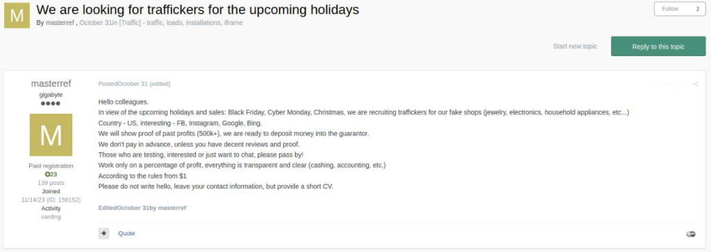 The holiday season presents an irresistible opportunity for cybercriminals to capitalize on increased online transactions. Tools and services now available on the darknet empower attackers to target e-commerce platforms and unsuspecting shoppers more effectively than ever. This year, threat actors are leveraging cutting-edge techniques, including AI-powered phishing lures, sophisticated website cloning tools, and remote code execution (RCE) exploits to gain unauthorized access to shopping platforms. AI-driven methods allow attackers to craft convincing emails and replicas of legitimate websites to steal data or trick users into disclosing sensitive information.